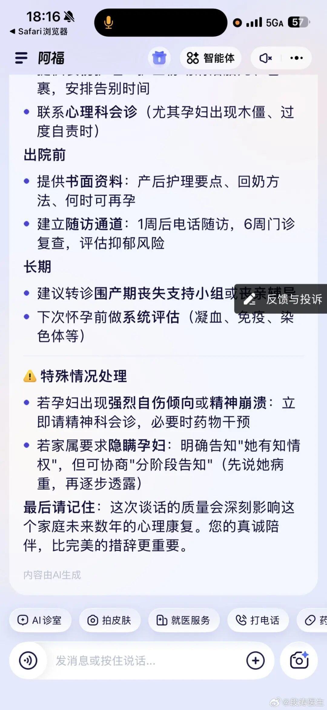 同时,AI 作为「减负工具」,能把医生从「流水线问答」里解放出来。段涛医生曾表示,线下门诊 70% 的咨询都是与孕期相关的基础、重复性问题[14]。AI 健康应用可以帮医生分担掉这部分重复劳动的压力。