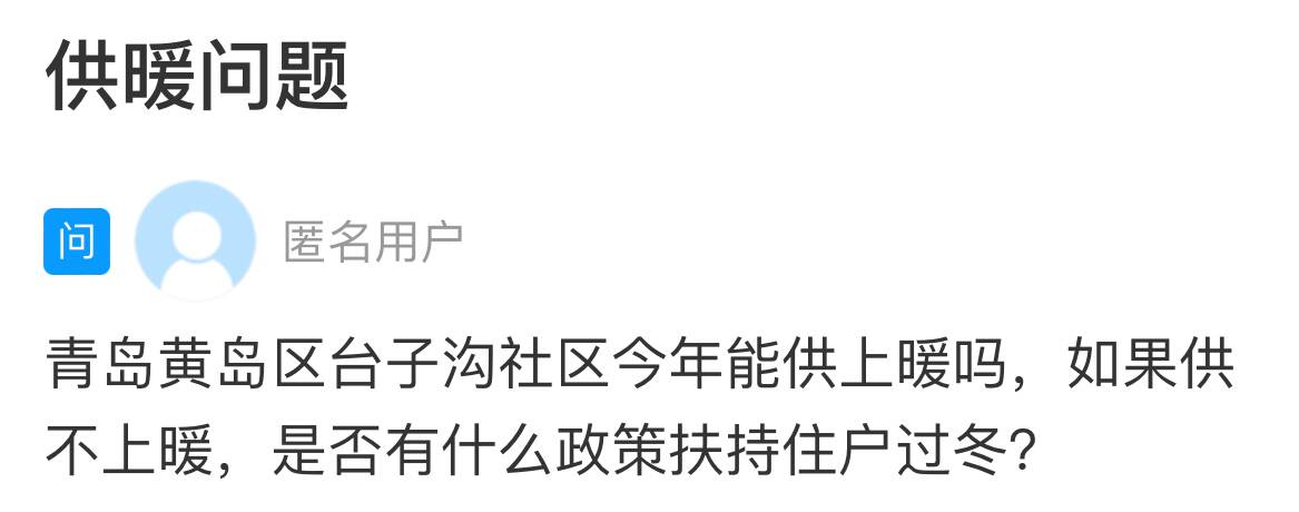 齐鲁网·闪电新闻10月28日讯 青岛的一位网友在闪电新闻网络问政平台留言:黄岛台子沟社区今年能供上暖吗?如果供不上暖,是否有什么政策扶持住户过冬?