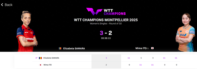 >>>北京时间10月29日凌晨,WTT蒙彼利埃冠军赛女单1/16决赛,日乒大将伊藤美诚2-3不敌罗马尼亚老将萨马拉,伊藤在大比分2-1领先的情况下被逆转。