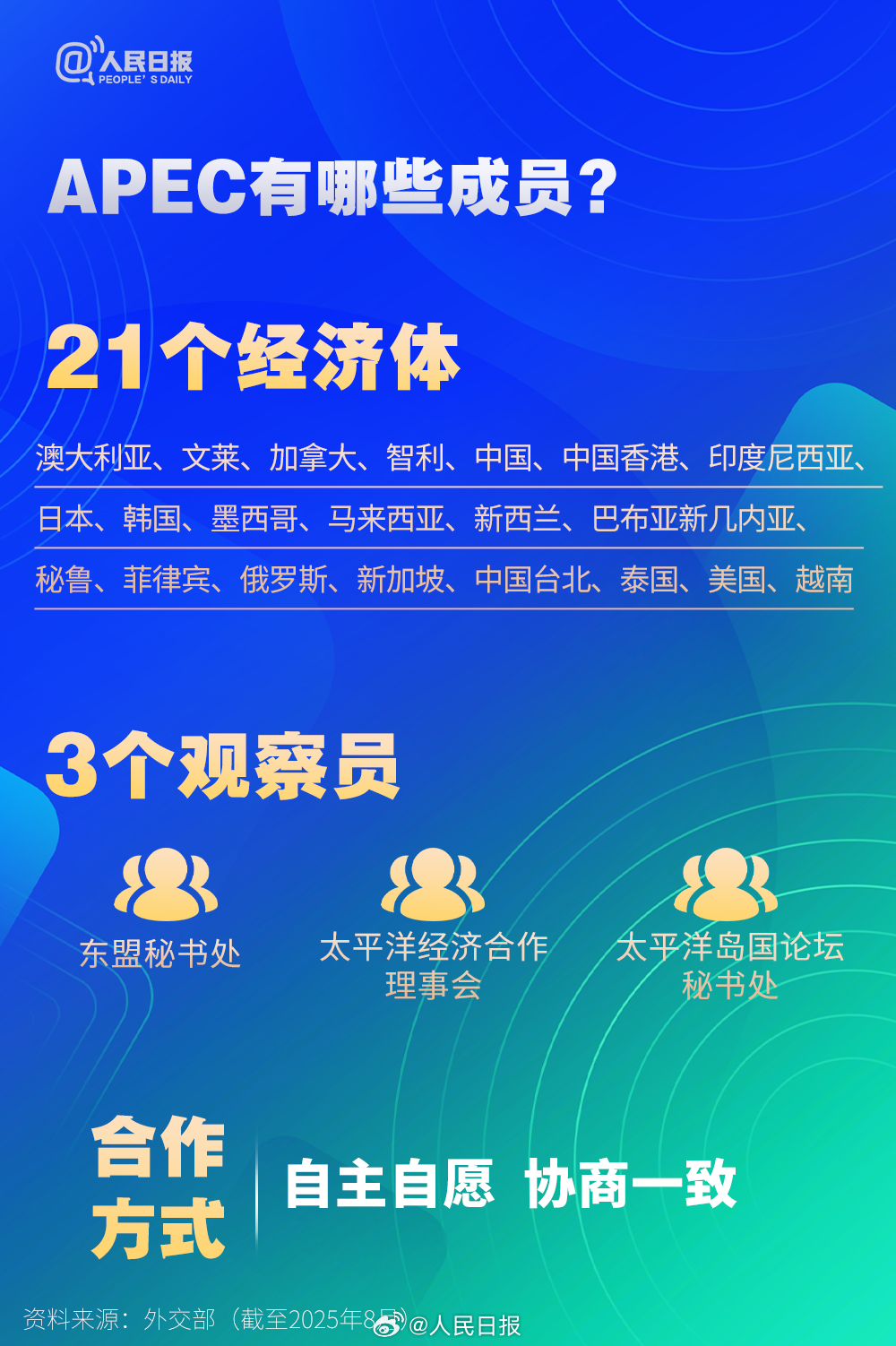 国家主席习近平将于10月30日至11月1日赴韩国庆州出席亚太经合组织第三十二次领导人非正式会议并对韩国进行国事访问。什么是亚太经合组织(APEC)?关于APEC,你了解多少?有关APEC的知识点↓↓速速收藏,一起学习!