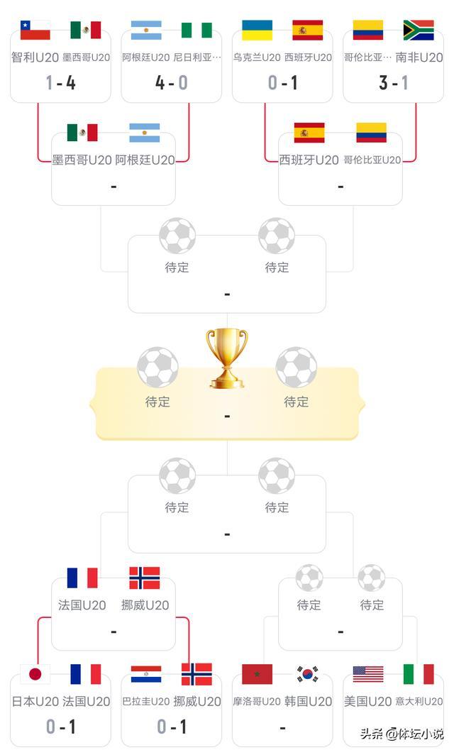 随着日本出局,亚洲仅剩下韩国一支球队,这样一来本届赛事的八强产生6席,三组1/4决赛敲定,阿根廷大战墨西哥上演美洲德比,西班牙对决哥伦比亚迎来欧美交锋。法国和挪威比拼上演欧洲德比,期待精彩的对决到来,让我们拭目以待!