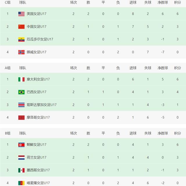 目前,积6分的美国、朝鲜、意大利、西班牙、加拿大、日本,已经提前一轮晋级十六强淘汰赛,中国女足最后一轮只要打平厄瓜多尔,即可锁定小组前二,实现首次闯入淘汰赛的目标。