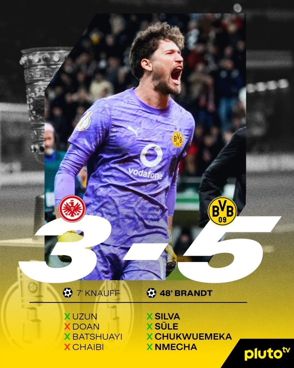 德国杯第二轮,多特点球大战5-3淘汰法兰克福晋级。格策助攻克瑙夫闪击破门,莱尔森助攻布兰特推射扳平,堂安律远射中楣,点球大战堂安律、沙伊比失点。
