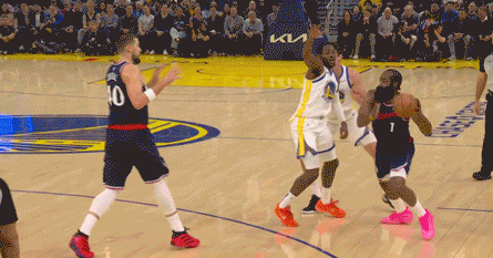 快船外线失准,首节三分球12中2,勇士三分15中7。第二节,伦纳德和保罗带着快船第二阵容。保罗真是老了,被波杰追身顶板大帽。祖巴茨面对39岁的霍福德,在篮下也没什么办法。哈登连续砍分,第二节还剩3分钟,快船追平了。
