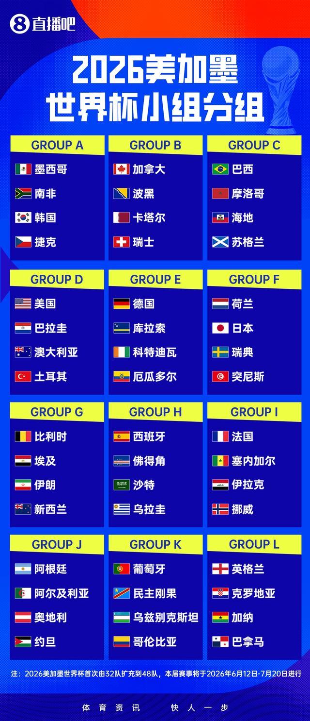 2026世界杯小组赛赛程:揭幕战6月12日3点,阿根廷6月17日9点首战